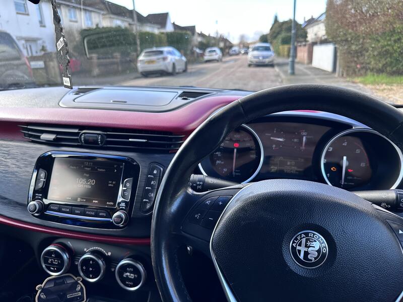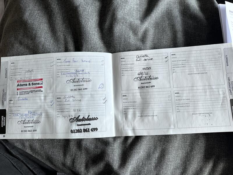 2016 Giulietta 1.6 120hp Reg - NX66 OUY 99,533 miles Second facelift edition Giulietta Diesel 2 keys Manual - 6 speed. 20/year VED Cheap insurance group - 17E ULEZ compliant - Euro 6 MOT until 12/2/2027 Very high spec: Front & Rear Parking Sensors Front & Rear Fog Lights Auto headlights Auto wipers Cruise control 6.5" UConnect system with Bluetooth and navigation. Armrest Auto Dual Zone AC 3 driving modes - DNA system - Dynamic, Natural, All Weather. Red interior - leather seats, matching door cards, dash trim and armrest. Heated front seats, electric lumbar support adjustment. Etna black - overall good body work but small damage to rear passenger arch and boot lid paintwork fading. Sequential smoked side indicators (OEM included). Alfa Romeo logo front door flood lights (OEM included). Full service history. New 12 months' MOT, just had a fresh full service. Very clean MOT history. GSR induction kit - adds a nice intake sound. (Original airbox included) Aftermarket GMP Italia Drake 18" alloys, Conti PremiumContact7 all round with good tread. Clutch and flywheel changed 17k miles ago. Cambelt done 25k miles ago. Done by Autolusso Ferndown under my ownership. Plenty of other jobs done too. New front lower arms and alignment. New rear springs . Discs and pads done all round about 12k miles ago with fluid change. Lots of paperwork with her. She's been a brilliant car during my 3 year ownership and well looked after, but needs a new home as we've welcomed a 2.0 Giulietta to the family. Alongside my Brera, I think 3 Alfas is a bit much for just me. The subtle modifications build on the Italian flair put into the design and have actually reduced my annual insurance when added to the policy, so likely nothing to worry about for potential new owners (even if a new driver as I was). Thanks for looking. |